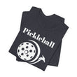 Lightweight, breathable, and quietly confident — this Pickleball tee was designed for players who live on and off the court. The stacked chest layout (PICKLEBALL → Official Pickleball Essentials logo → Play Safe) sits high on the chest so your message reads cleanly whether you’re warming up, cheering from the sidelines, or grabbing coffee after a match. Printed on premium Bella+Canvas 3001 cotton, the shirt feels soft against skin, holds its shape game after game, and showcases a crisp, high-resolution logo that won’t fade into the wash. Subtle performance details — shoulder tape for stability, side seams for structure, and a ribbed collar that keeps its form — make this more than a statement tee: it’s a dependable layer you reach for when you want to represent the sport with calm confidence. Comes with a tear-away label for comfort and responsibly made materials from a brand committed to ethical manufacturing.